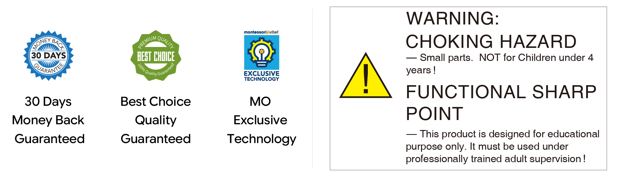 At Montessori Outlet, every product is inspected before shipping to ensure customer satisfaction. Returns or exchanges are accepted within 30 days of delivery under two categories: Category A: Manufacturer Defects & Shipping Damages